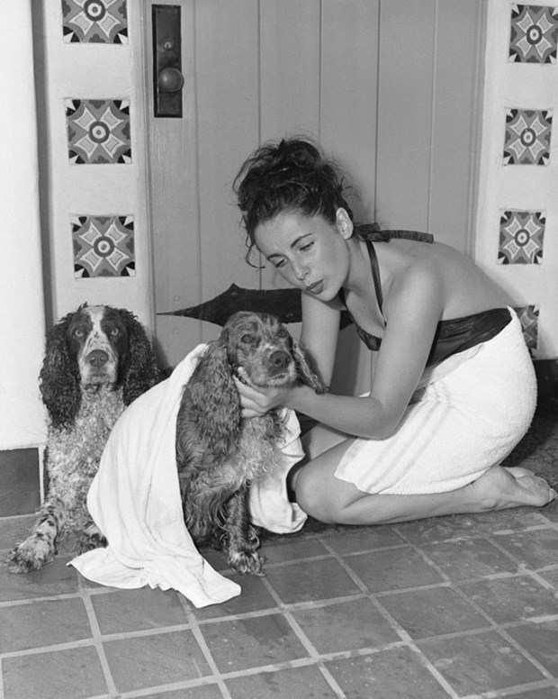 17 yaşındaki Elizabeth Taylor köpeklerini yıkıyor.